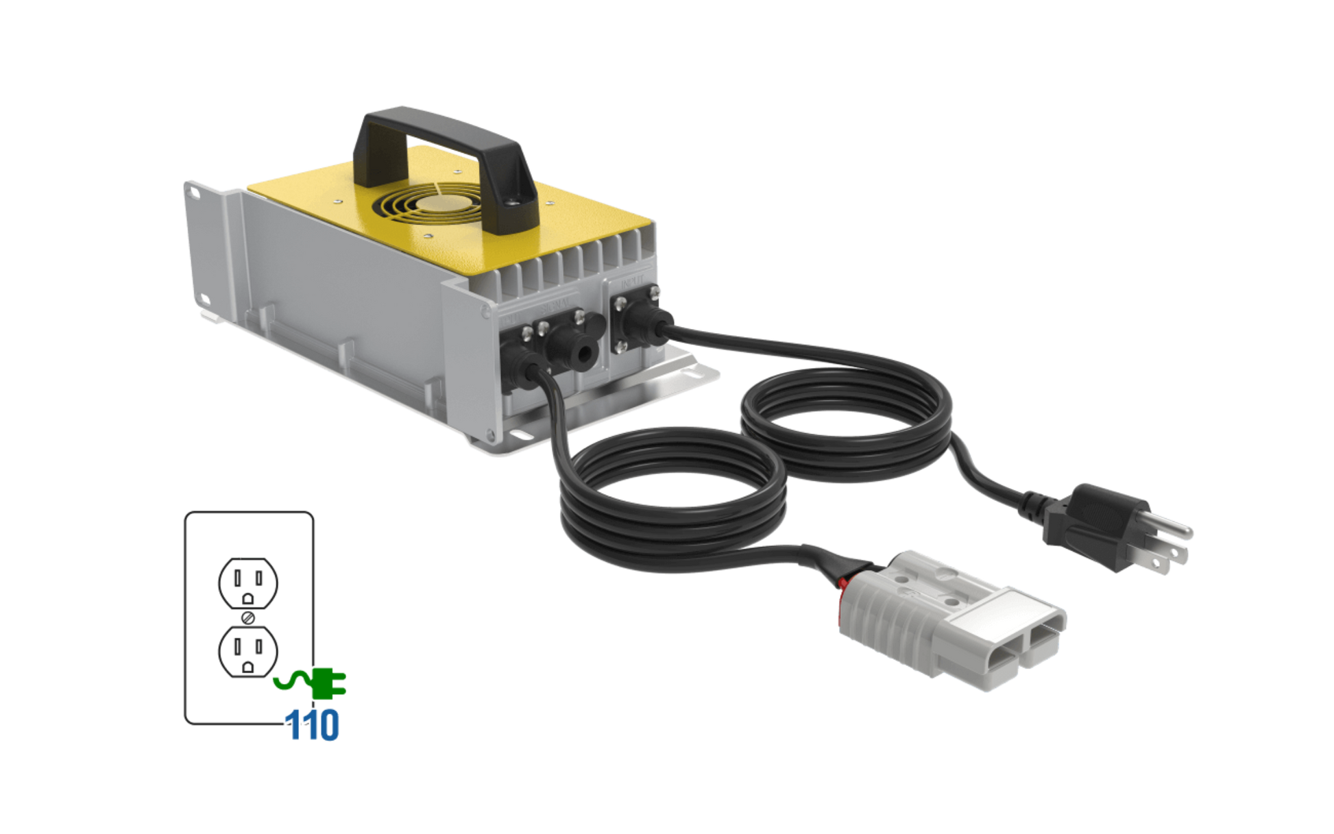 Ensure you’re staying powered through long work days or long winters with this heavy-duty 72V charger from BigBattery. This charger’s compact, portable form factor and IP65 weatherproof protection rating ensures you always have power when and where you need it. Plus, an easy Anderson-style connection for your battery and 110VAC cable for plugging directly into any standard wall outlet means you’ll be plugging in, charging up, and getting back to business in no time.