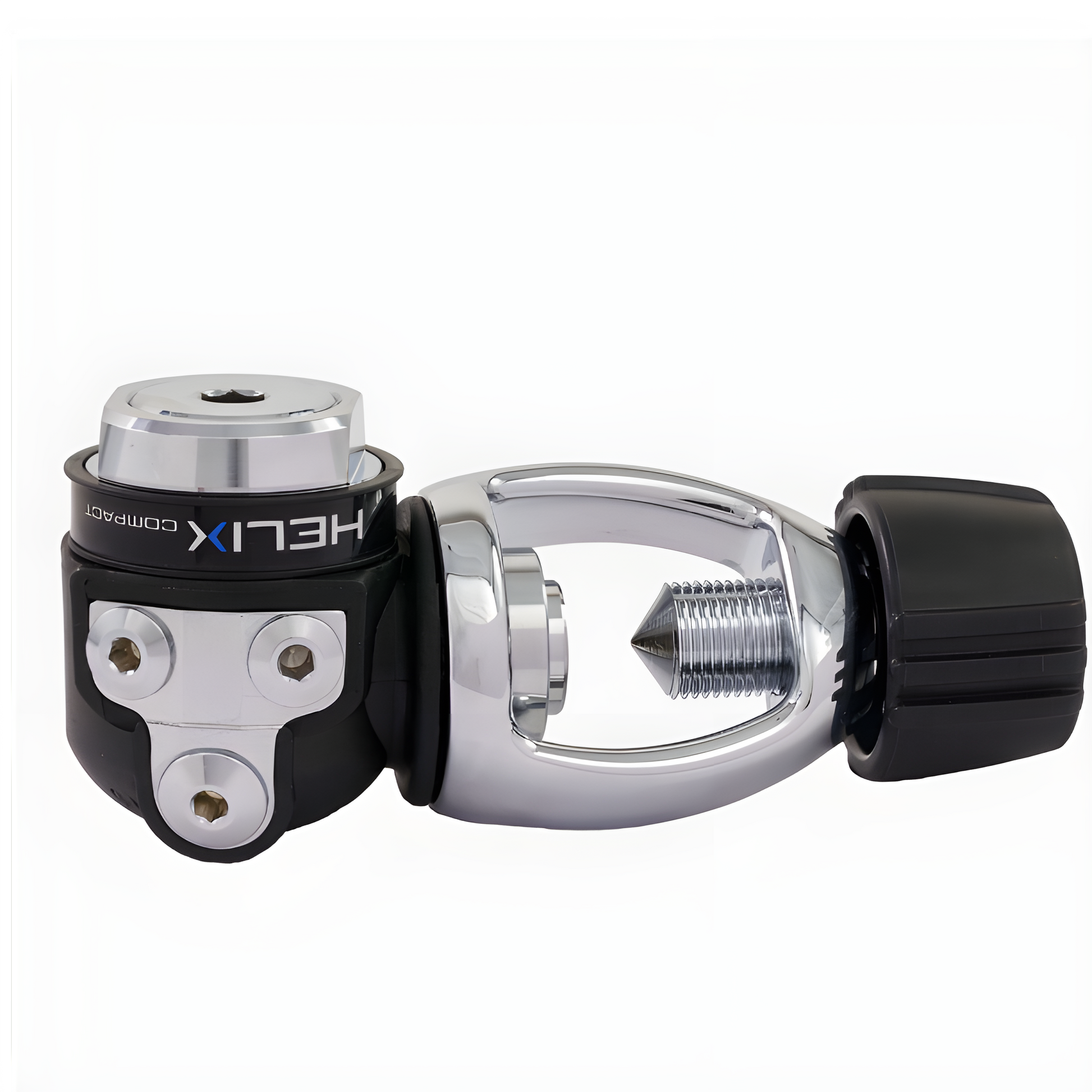 Something so small and light, you’d hardly notice it’s there that was the goal that led to the new Helix Compact. This regulator is designed for anyone looking to save space while maintaining the advantages of a full-sized regulator. It offers unparalleled comfort, breathing ease, and function in a travel-sized package.