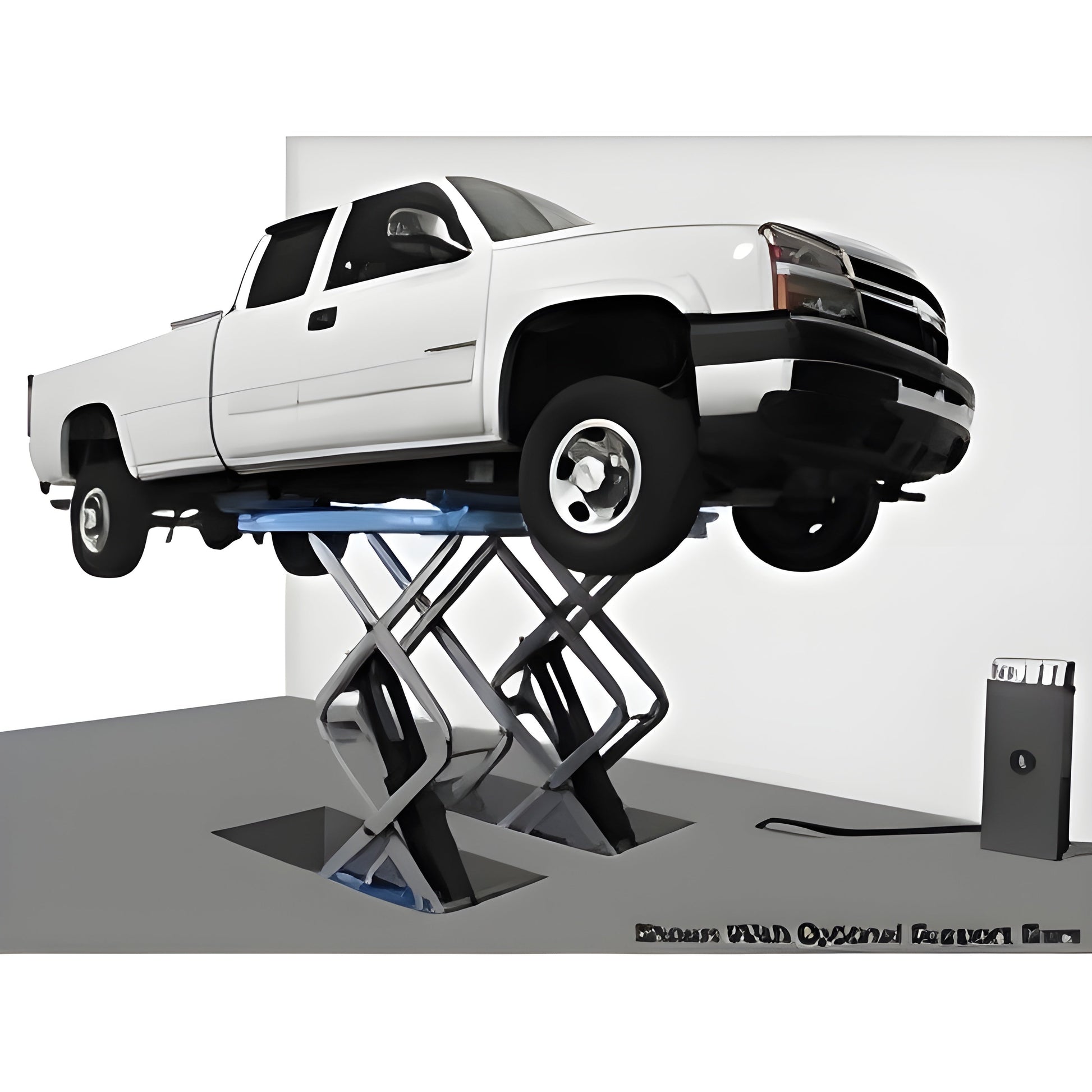 The Atlas FM9SL 9,000 lb. flush mounted scissor lift is the perfect choice for those service facilities that need to maximize the number of vehicle lifts per service area square foot. If you like the “clean floor look” for your service department (no above ground lifts), then the Atlas® FM9SL flush mounted scissor lift offers the perfect alternative. Unlike “old school in-ground” lifts, the flush mounted lift requires minimal excavation and the electric/hydraulic power unit is easily accessed during periodic maintenance.The flush mounted platforms offer no “above ground” obstruction and the platforms can be “driven over” from any direction so that a vehicle may be properly positioned in the tightest of spaces. The Atlas FM9SL has both front and rear platform extensions that can be used when lifting a long wheel base pick-up truck.As with any scissor lift that is completely open (no cross support bar in the front or rear to keep the platforms level), the operator must make sure that the vehicle’s frame is positioned at least 6 inches from the inside of the platform. If too much weight is positioned near the edges of the platform (closer than 6 inches from the inside edges), the platforms may become “pigeon toed” and damage may occur. We sell the Atlas scissor lift support bar kit to disperse the narrow frame weight over the entire platform lifting surface
