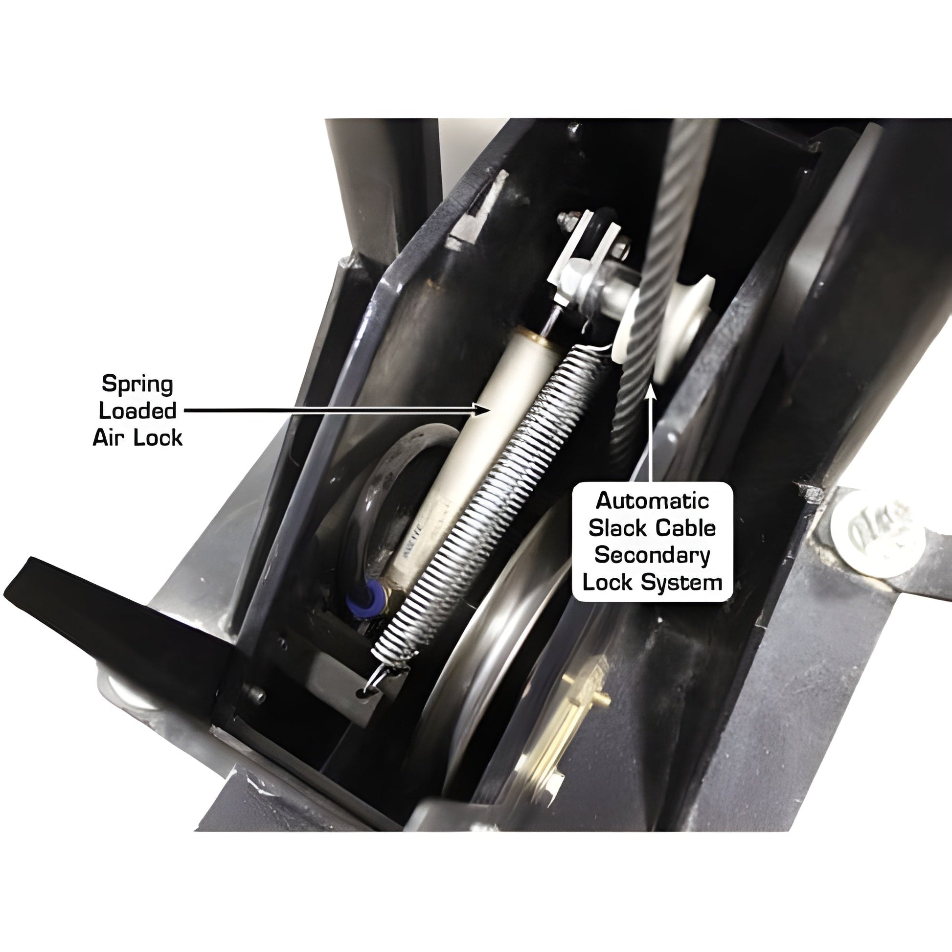 The Atlas Garage PRO7000ST is the perfect lift for those car enthusiasts lucky enough to have extra tall ceilings and need to store regular height vehicles on top of extra tall vehicles. The PRO7000ST raises vehicles weighing up to 7,000 lbs. all the way to over 12 feet (144 inches) under the runway.This super tall four post storage lift uses the same heavy duty runways as the Atlas® Garage PRO9000. The runways feature welded tracks which allow the use of a rolling bridge jack (such as the Atlas® RJ6BK). The extra tall lifting height gives customers the space needed to park much taller vehicles under the vehicle stored on top. There are a whopping 21 locking positions in the lock ladder, and the lock ladder may be adjusted during installation giving an almost infinite number of locking heights.A single point release toggle (located next to the power unit) automatically unlocks all four spring loaded pneumatic locks. Compressed air is required to disengage the locks (air supply not included). The emergency slack cable secondary lock system is always “on standby” and will engage automatically if the cables are compromised or become too slack.