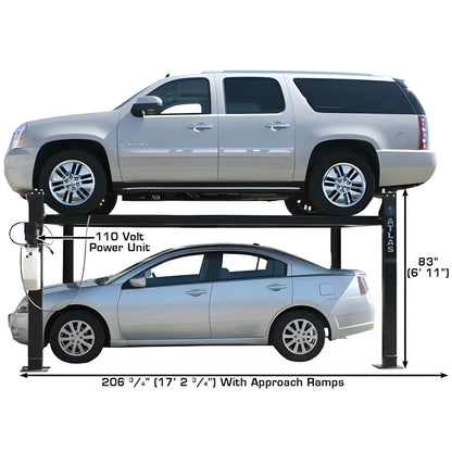 The Atlas Garage PRO8000 is our most popular 4-post hobbyist lift. Perfect for the customer with too many cars and not enough space. The Garage PRO8000 allows the user to easily double their space by stacking most passenger cars.The Atlas Garage PRO series of 4-post lifts (8,000 lb. capacity) are designed and built for use by homeowners or restoration shops. These lifts are not designed for use in commercial repair shops where they would be raised and lowered several times per day. If you have questions about which lift would best work in your application please contact a salesperson..The Atlas Garage PRO8000 includes free plastic drip trays, a free steel jack tray, and a free caster kit with polyurethane wheels. The caster kit can be installed or removed in just a matter of minutes making the lift portable and allowing it to move between bays or even outside. All that makes the Garage PRO8000 one of the best valued 4-post lifts on the market.Many customers who purchased this lift also purchased the Atlas RJ35.