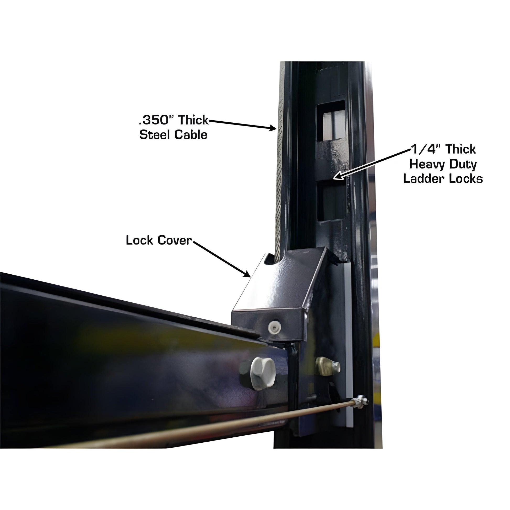A: Absolutely. The PRO8000EXT-L is equipped with safety locks at multiple heights and features a durable steel frame for secure lifting, ensuring both safety and stability when raising and lowering vehicles.