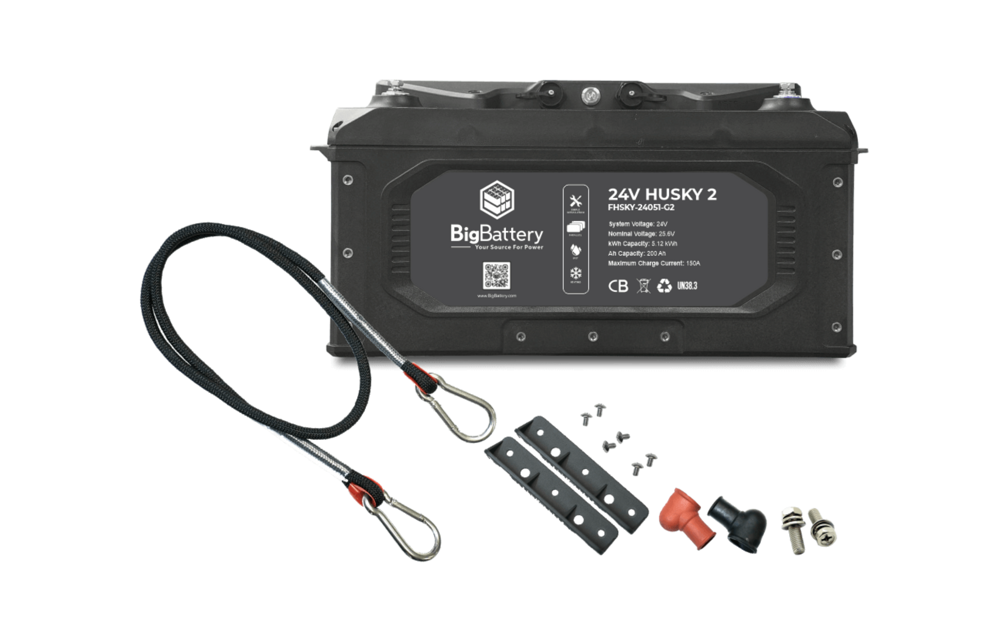 SECOND GENERATION POWER STORAGE IS HERE! This 24V 5.12kWh LiFePO4 HUSKY 2 Kit is the latest and greatest from BigBattery, providing a robust solution, with unmatched reliability and efficiency, for any off-grid power system, emergency backup, or mobile power setup in your RV or camper van.