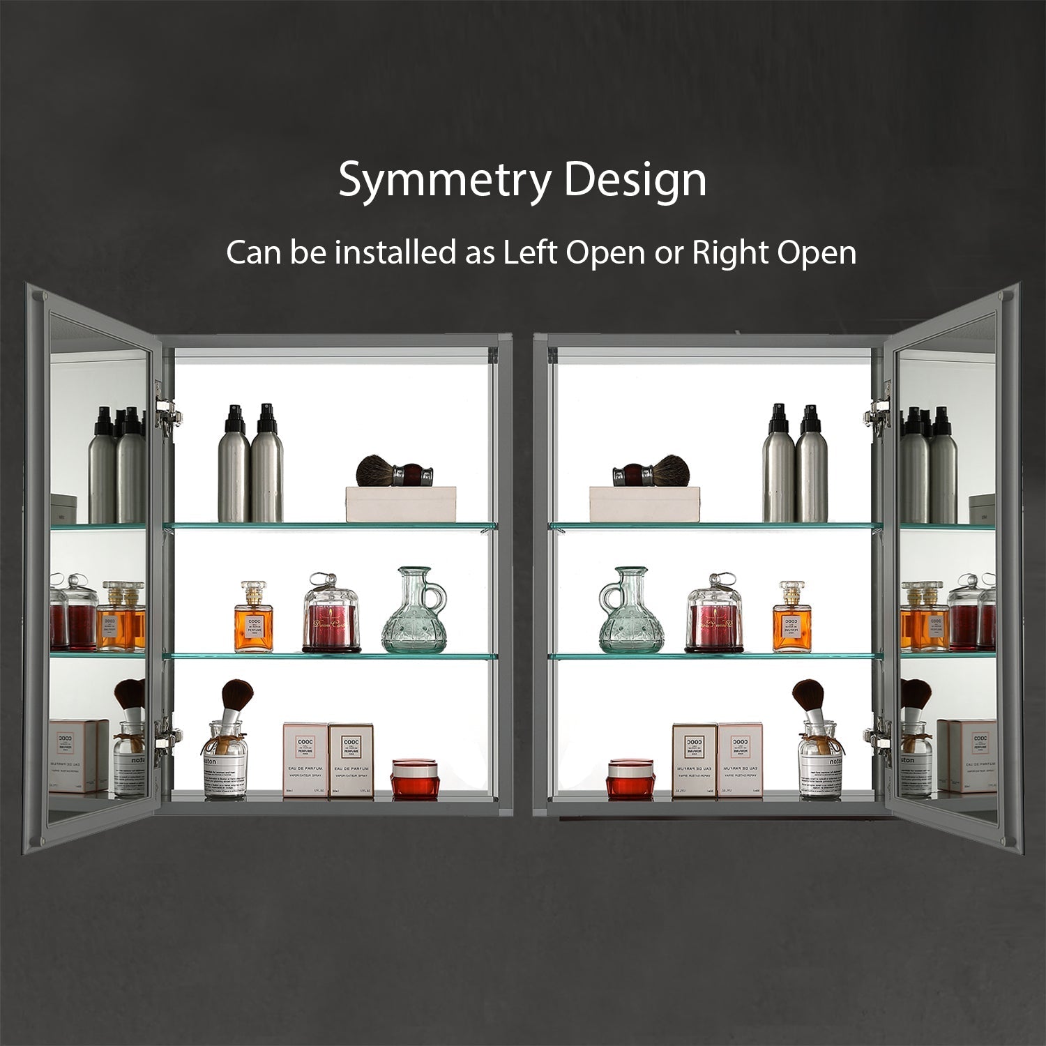 - Mirrors on both sides of the door and back wall of the medicine cabinet.