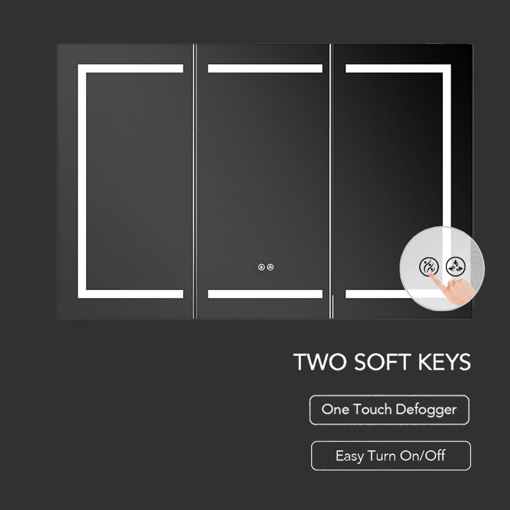 Built-in defogger with auto-off keeps the mirror clear after steamy showers.