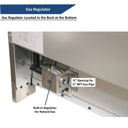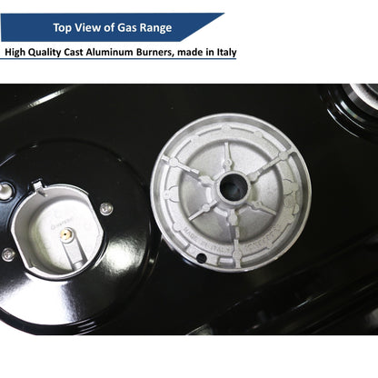 Heavy Duty Construction - Constructed of stainless steel, heavy duty cast iron grates for heat retention and distribution. High quality cast aluminum burners, made in Italy. Gas regulator is included.