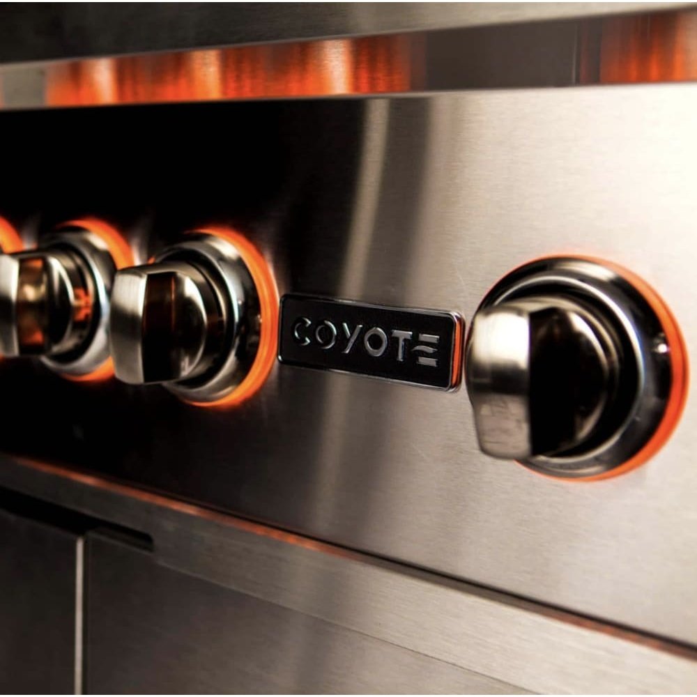 The S-Series PRO PACKAGE includes Coyote’s most popular options: Laser Cut Grates, Grill Cover and a 2 Year Warranty for parts not covered in the lifetime warranty. All of these features are housed within a continuous 304 Stainless Steel grill with seamless edging underneath a double-walled hood equipped with interior lights—for those dinners under the stars.