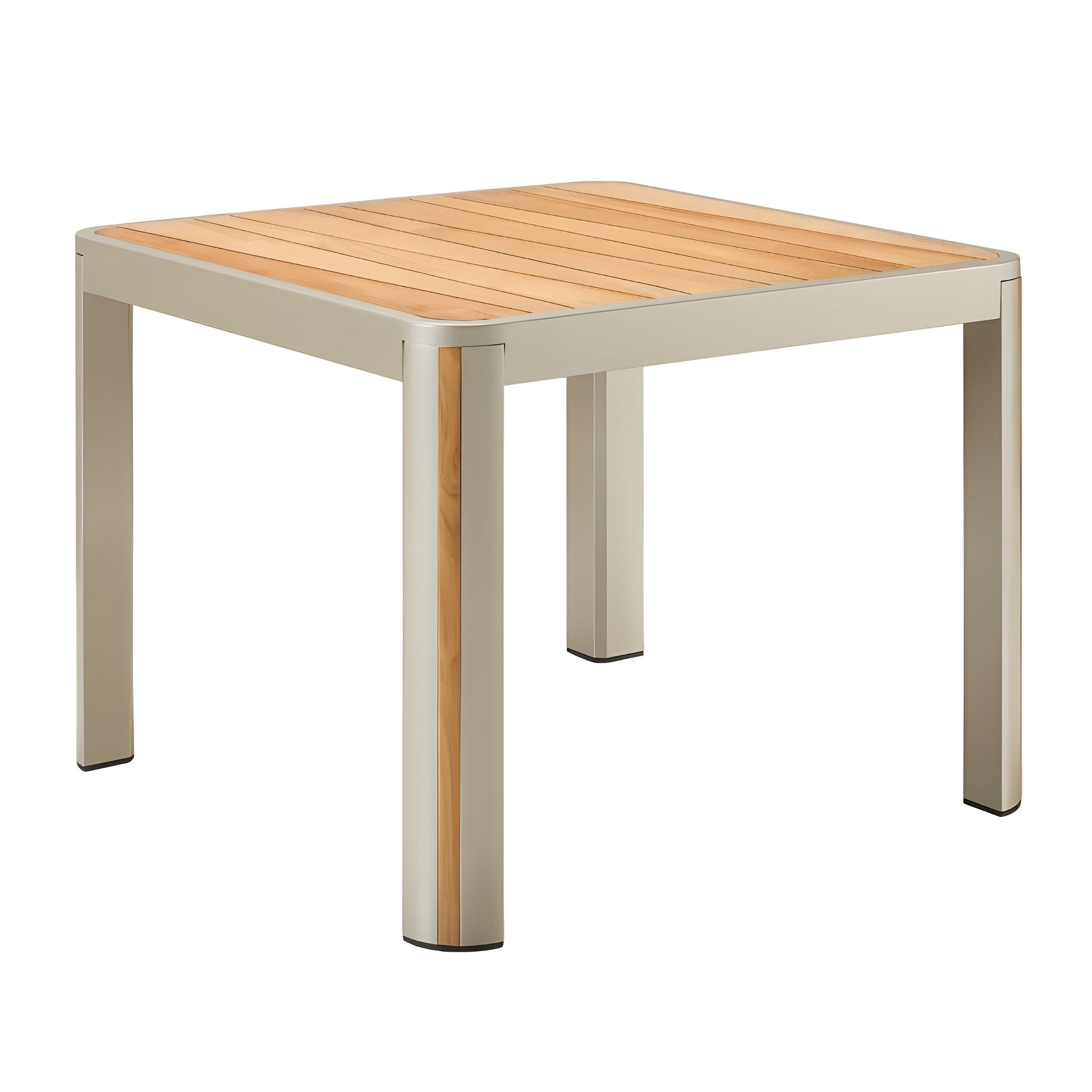 A: The Higold Geneva Square Dining Table – Latte is a stylish and durable outdoor dining table featuring a modern design and a warm neutral "Latte" finish.