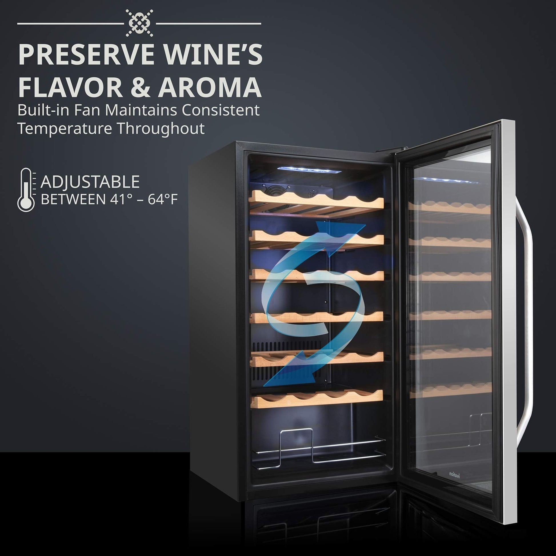 Keeping your wine collection has never looked better with the Ivation Freestanding Compressor Wine Cooler Refrigerator, place this cooling unit in any room where you like to have social parties or nice, quiet evenings. Enjoy having a wine refrigerator freestanding close by where you can store your favorite elegant drinks. The Ivation Freestanding Small Wine Fridge fits in any room with its beautiful, exterior design, also you can arrange your wine chiller how you like by using the removable chrome shelves. Adjust the cooling process of the mini wine fridge if needed with the easy-to-operate temperature controls and watch your beverages chill right before your eyes with the interior LED lighting and the transparent glass door of the wine cellar. The advanced compressor cooling system on the small wine cooler delivers the optimal environment for those special vintages, preserving their unique flavor and delicacy. Sit back and relax knowing that you have a convenient lockable wine cooler refrigerator to help you unwind.