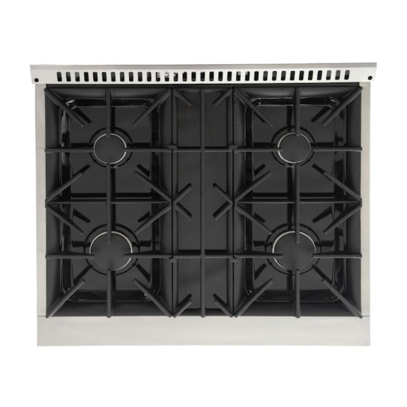 Pro-level burners: Four sealed gas burners (two 15,000 BTU + two 9,000 BTU) deliver high power and precise control for various cooking techniques.