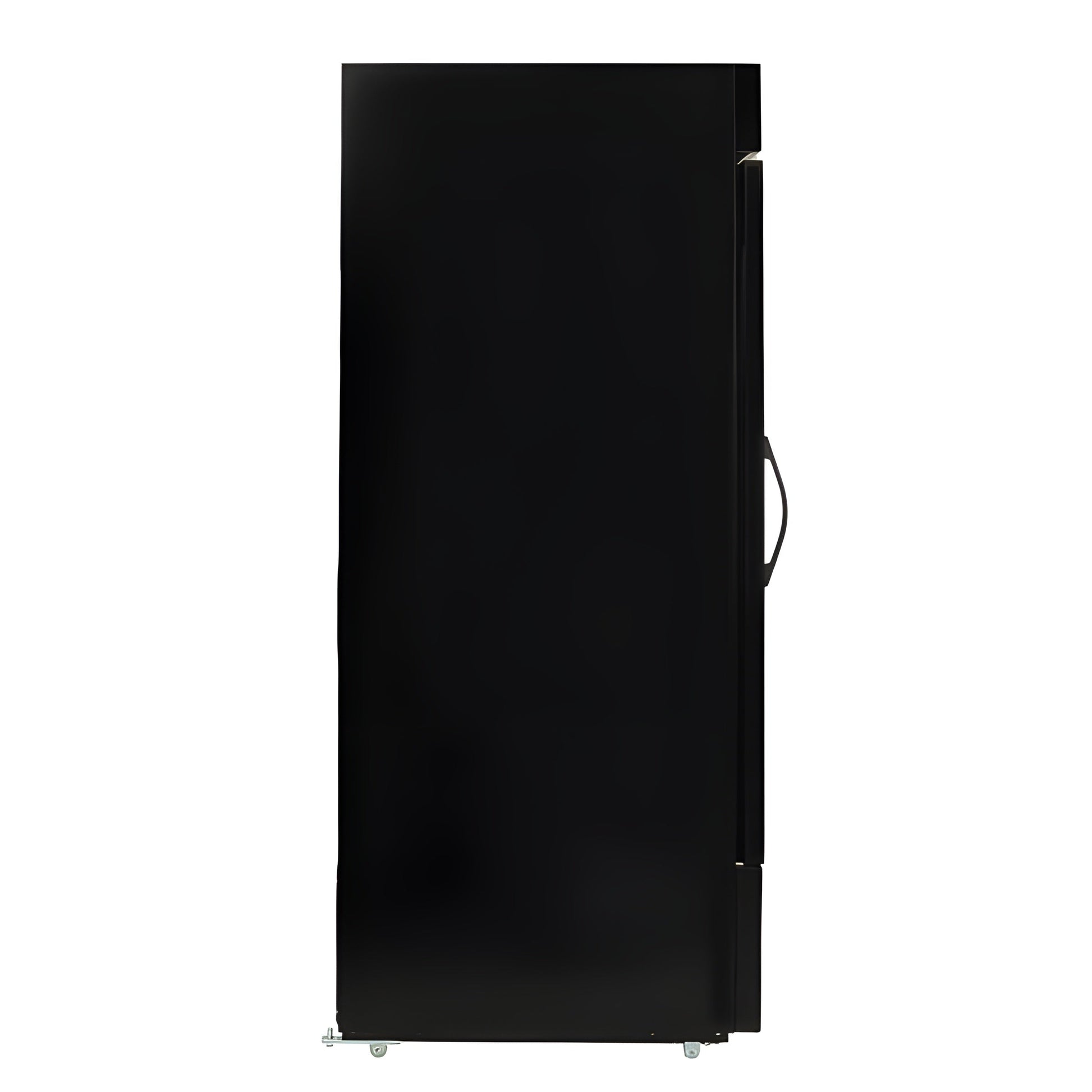 The Maxx Cold V-Series Single Glass Door Merchandiser Refrigerator is a valuable asset for commercial establishments looking to showcase refrigerated products in a visually appealing way. This cost-effective commercial merchandiser refrigerator measures 27"W and has a capacity of 23 cubic feet. It is constructed of a powder-coated steel exterior and a powder-coated aluminum interior. The unit has an easily accessible bottom mount for cleaning. This commercial merchandiser fridge has one double-pane insulated glass door that allows customers to see the contents easily without opening the doors. The unit has four adjustable heavy-duty PE-coated wire shelves that are ideal for displaying various refrigerated items such as soft drinks, dairy products, sandwiches, salads and more. Interior LED lighting illuminates the contents of the merchandiser, enhancing product visibility and presentation. The single-door merchandiser refrigerator is equipped with four rollers (two with leveling feet) for easy mobility. The unit features digital controls with an LED temperature display and is designed to maintain a temperature of 33°F to 41°F (1°C to 5°C), ensuring your products are stored at the optimal temperature for quality and safety. This merchandiser features an automatic defrost system which helps to minimize maintenance. To help increase sales, the illuminated top panel is ideal for advertising and promoting your products in various settings such as supermarkets, convenience stores, gas stations, cafes and more. The Maxx Cold V-Series Single Glass Door Merchandiser Refrigerator is a cost-savvy choice for your commercial establishment.