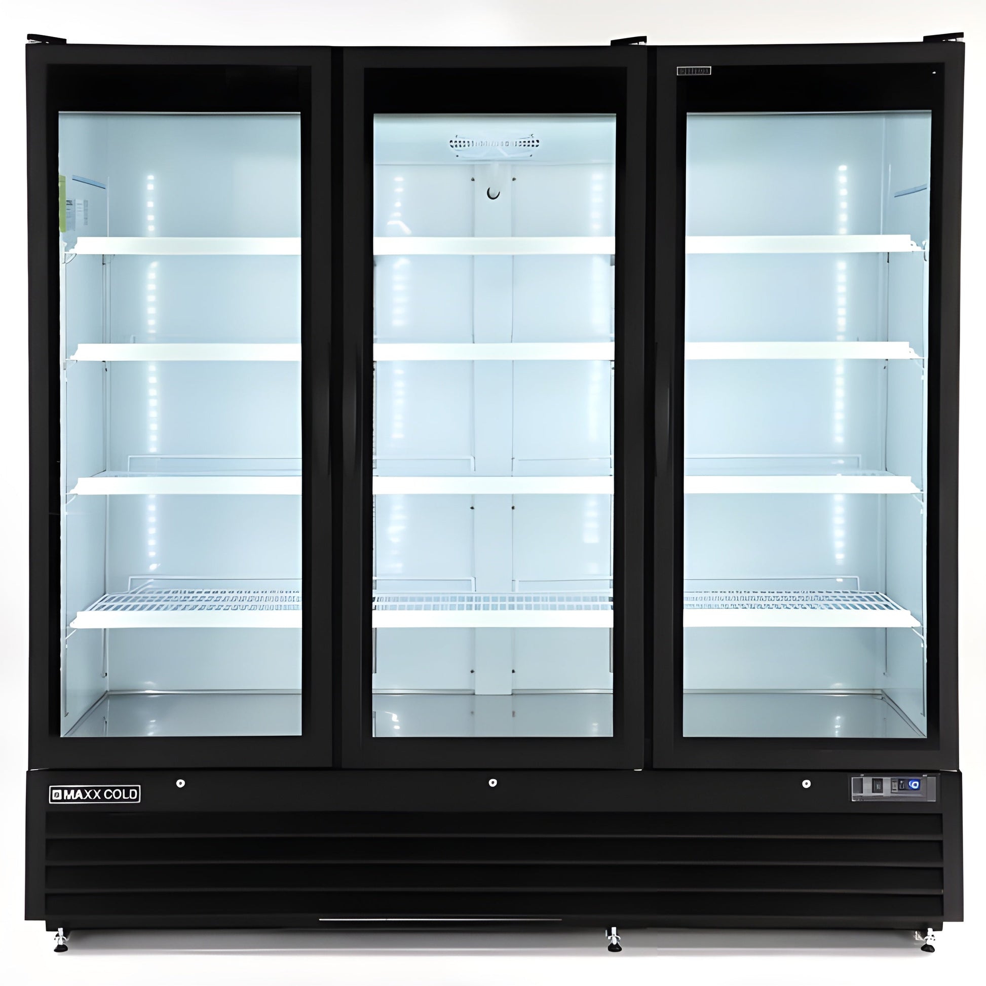 Commercial Glass Door Refrigerators Maxx Cold MXGDM-73RBHC 81 Inch Wide 3-Door Merchandiser Refrigerators with Large Storage Capacity (73 Cu. Ft)