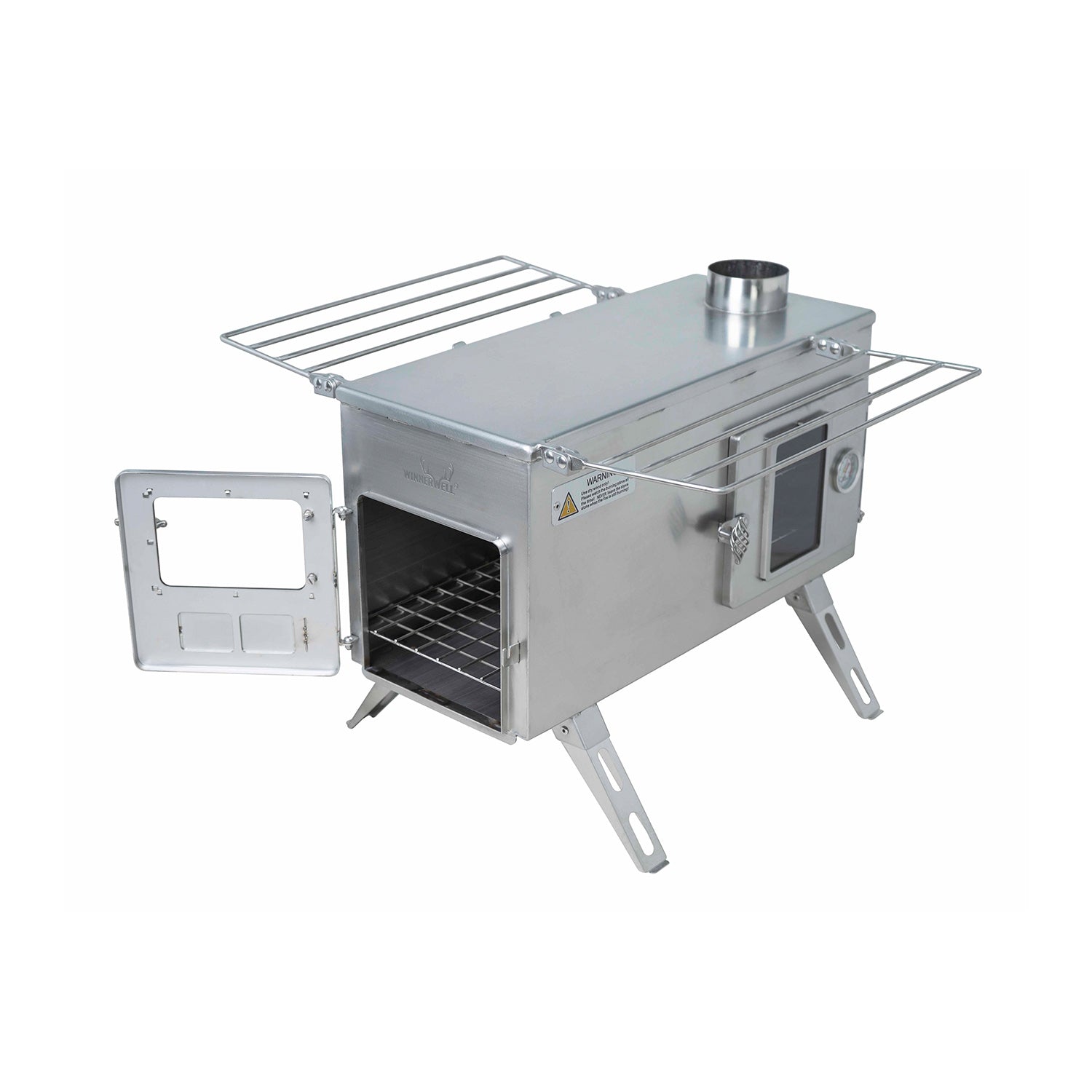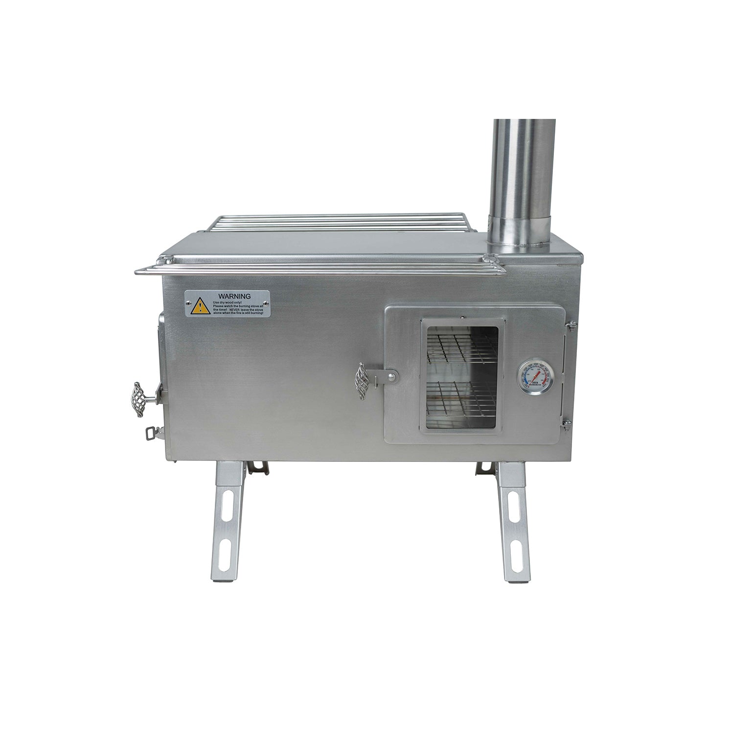 The Winnerwell Ovenstove combines the functionality of a high-performance camp stove with the convenience of an integrated oven. Its dedicated oven chamber, complete with an independent door, opens up a world of possibilities for baking and cooking in the great outdoors.Crafted from premium 304 stainless steel, known for its exceptional durability and resistance to corrosion, this stove is built to withstand the elements. The oven is designed to evenly absorb heat from all sides, delivering consistent baking temperatures.An integrated thermometer and a view window make it easy to monitor your meals, while the included dual baking racks maximize cooking capacity.