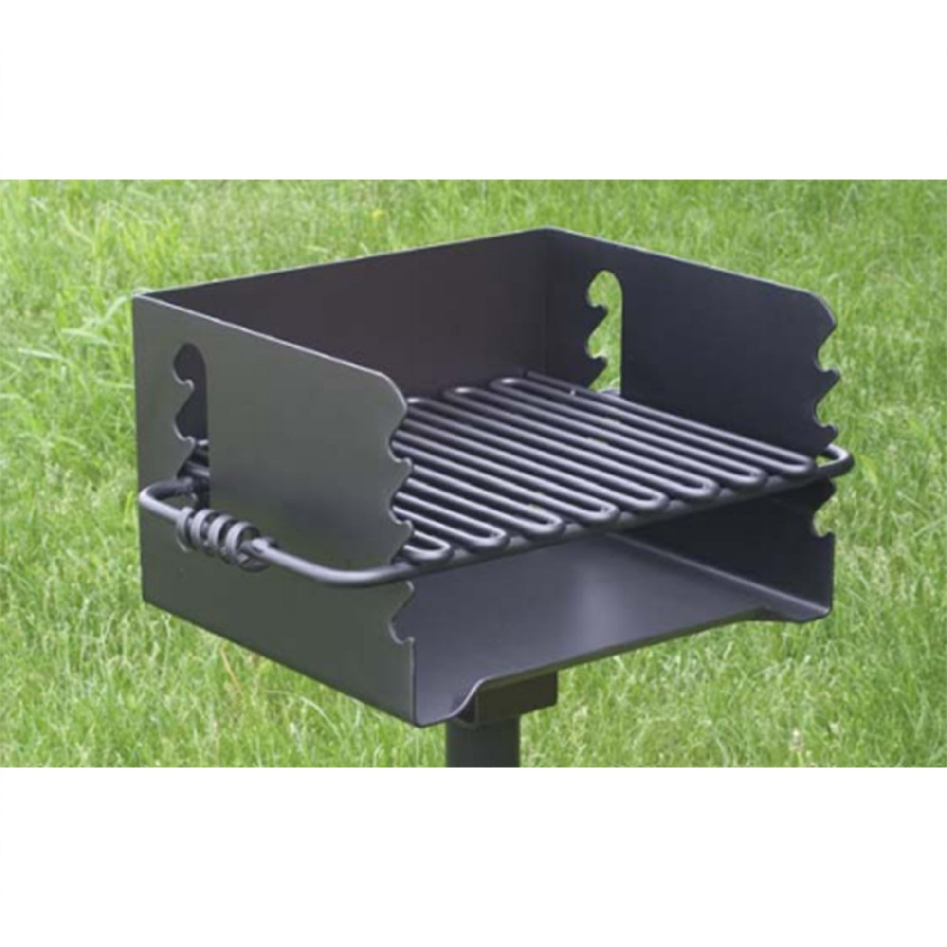Upgrade your outdoor space and ensure a secure and enjoyable cooking experience with the Pilot Rock CBP-135 Park Style Grills. These backyard charcoal grills are a testament to classic design and park-quality construction. Crafted with a robust 0.125-inch thick steel firebox, each is engineered to withstand the toughest challenges, vandalism, harsh weather conditions, or rigorous use. The cooking grate, composed of 0.5-inch and 0.375-inch diameter solid steel bars, provides a generous cooking area for all your grilling adventures.Their thoughtful design, which sets the grill apart, features coiled steel grips that allow for safe and easy adjustment across four levels. Each is equipped to handle the unpredictability of outdoor cooking, with a 360-degree rotation capability that ensures your grilling remains unaffected by changing winds. Installation is a breeze, as the grill's base stands tall at 40 inches and can be securely mounted onto a concrete footing (concrete not included). Plus, they include a theft-proof pin to deter any attempts to remove the firebox from the post.Whether you're a seasoned grill master or a novice, These Pilot Rock Park-Style grills will cater to your outdoor cooking needs with style, reliability, and durability.