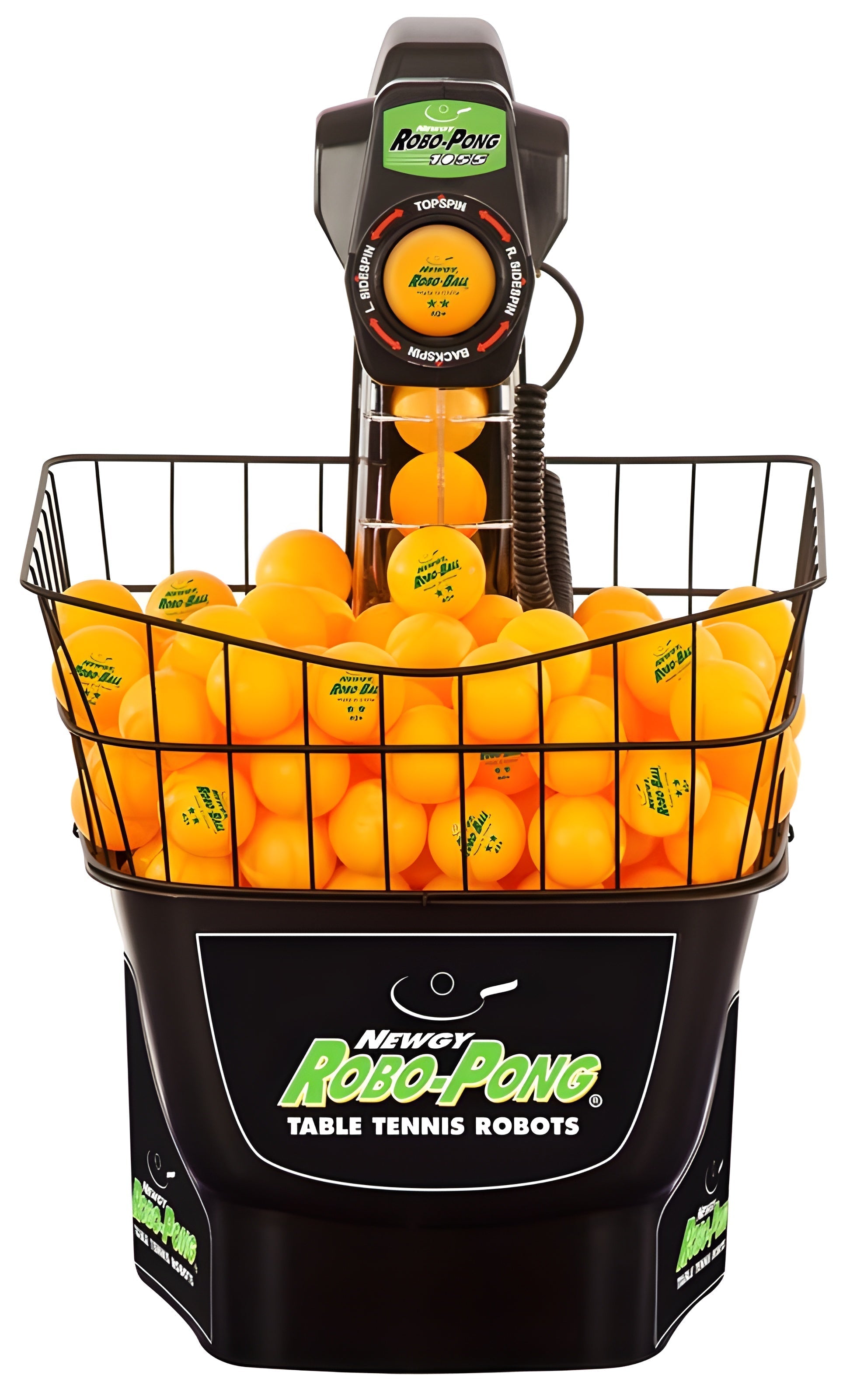 Same advanced features as the Robo-Pong 2055, but with a Ball Bucket and Extender Cage instead of a Recycling Net System.