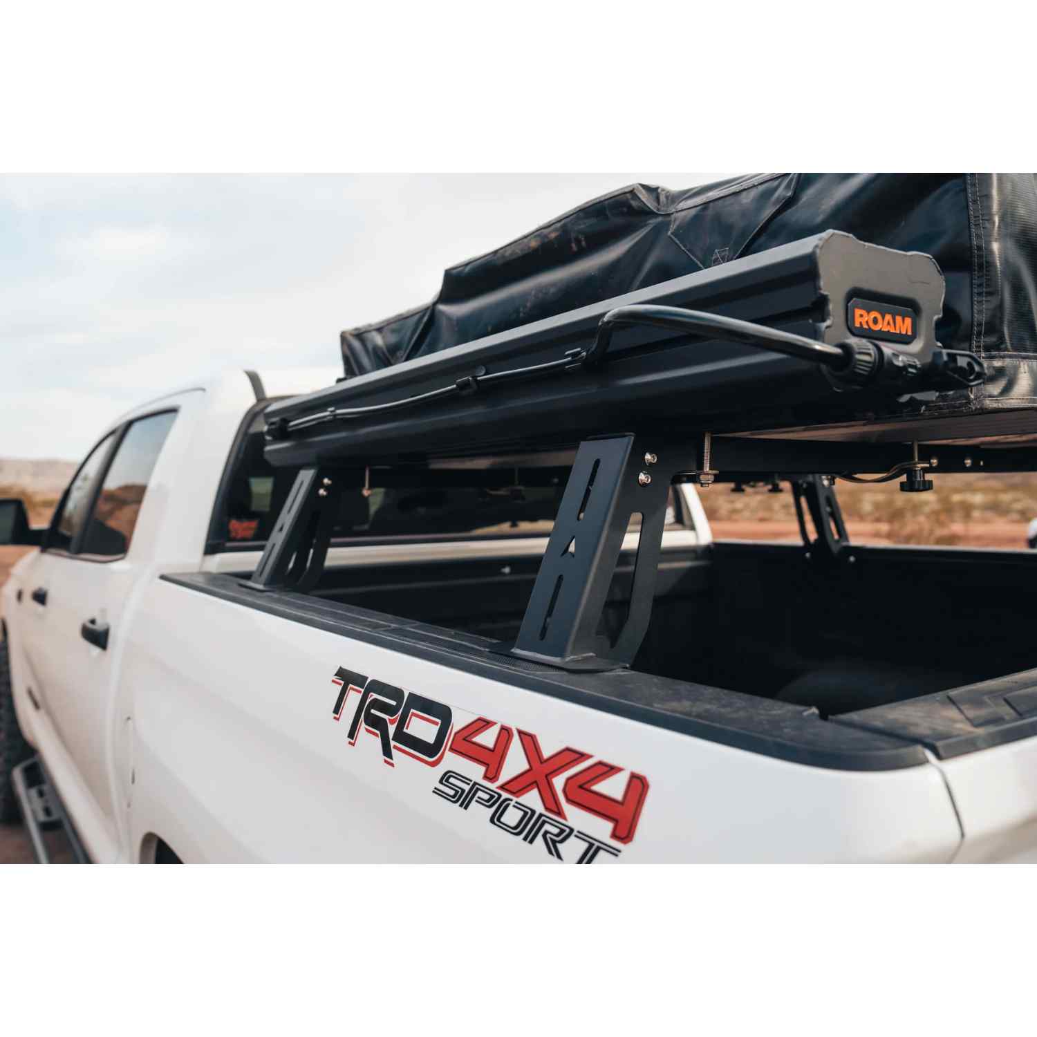 A: Mounts to most vehicle racks using included hardware and can be staked to the ground for stability.