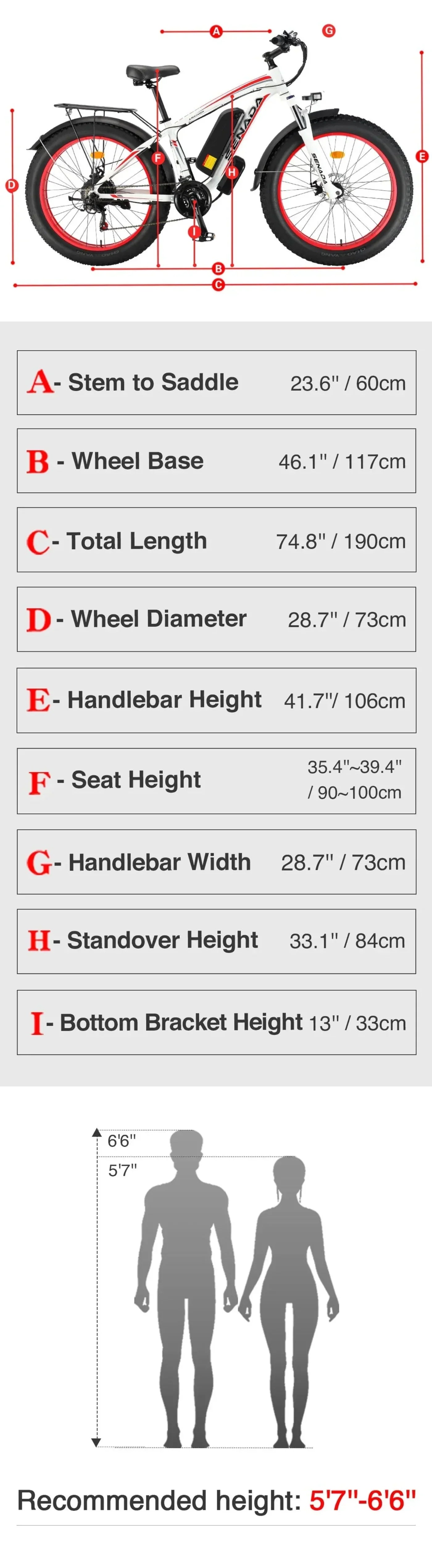 | Bike Dimensions (H x L) | Height: 35.4”–39.4” (90–100 cm) |
