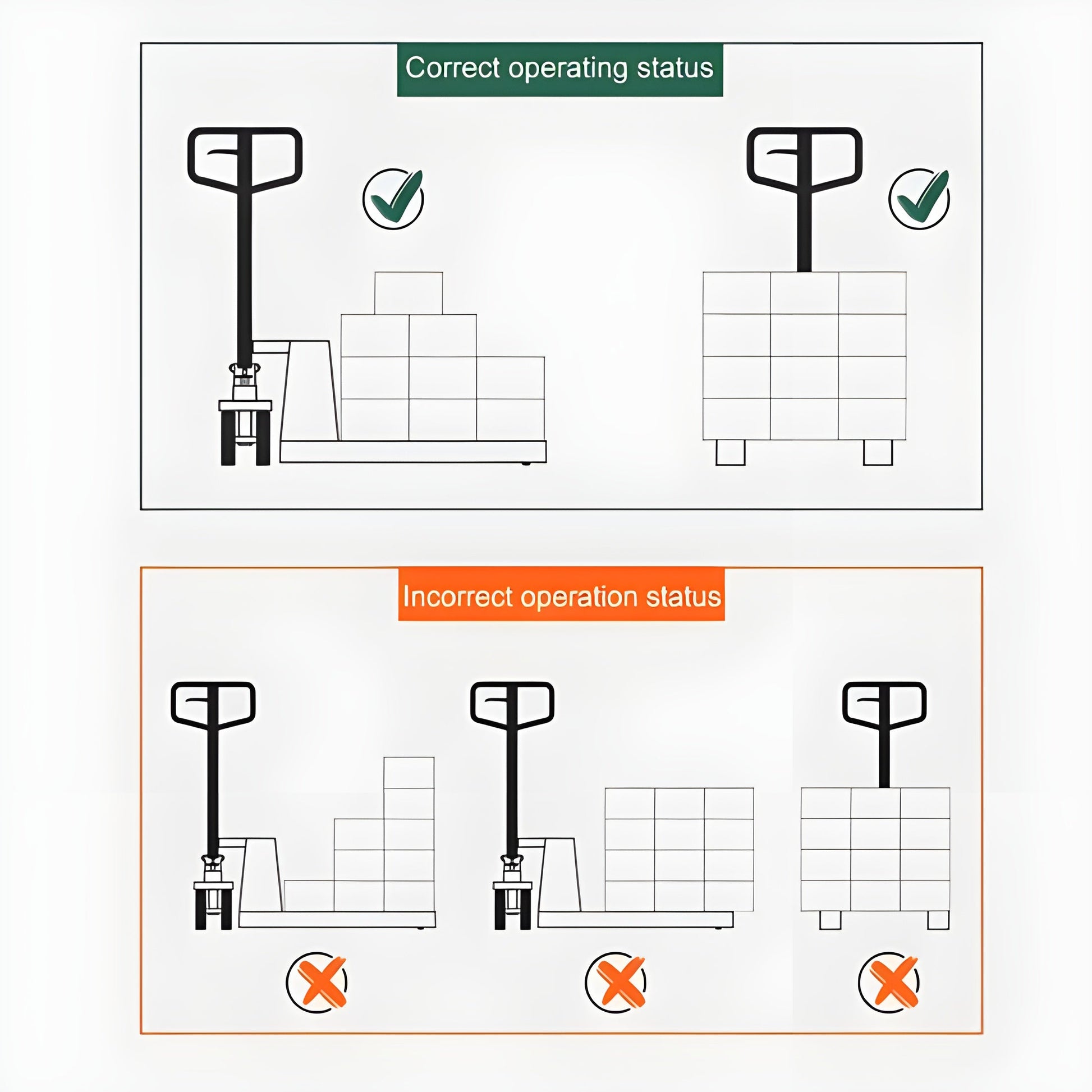 Clean Regularly – Wipe down the forks, hydraulic pump, and wheels to remove dust, dirt, and debris.