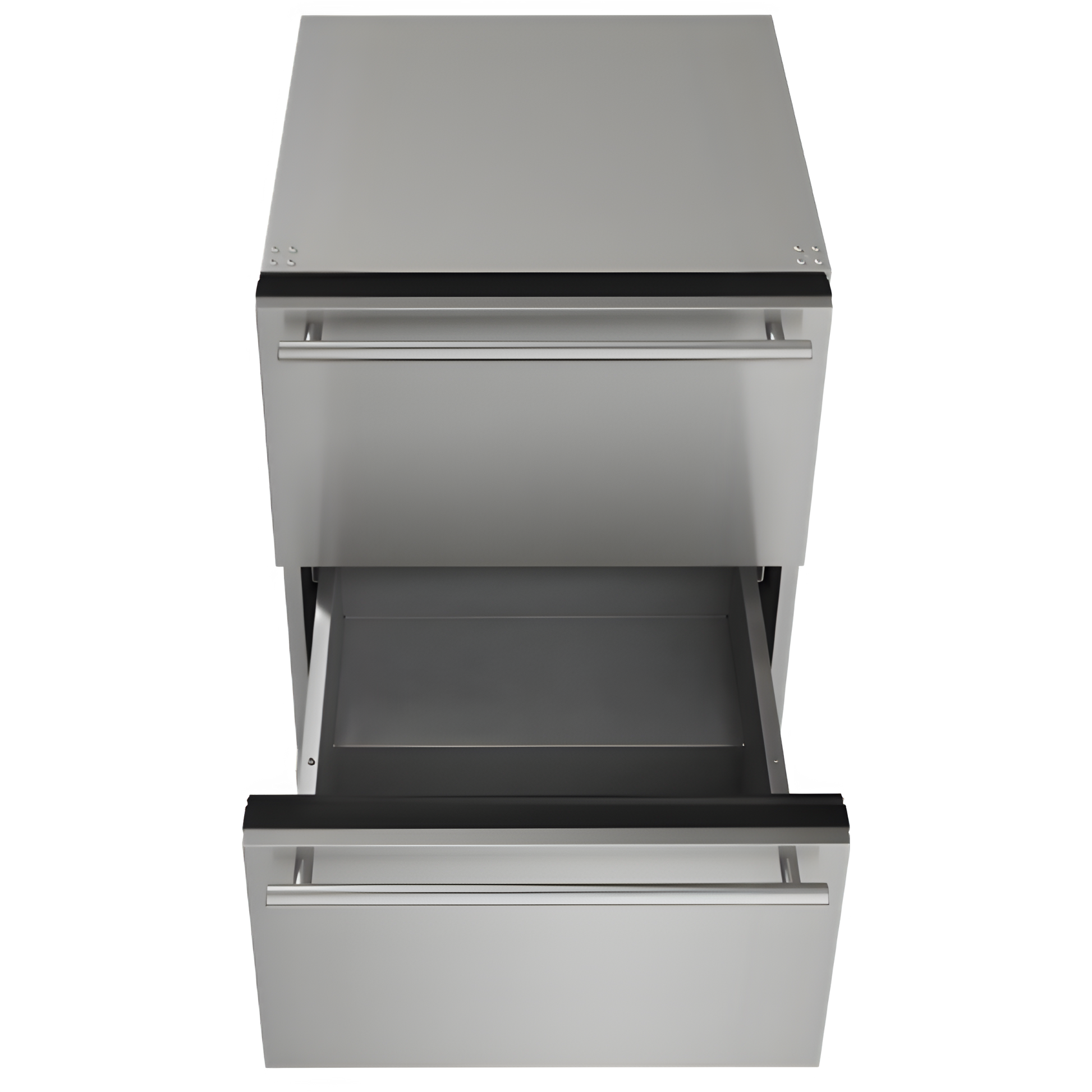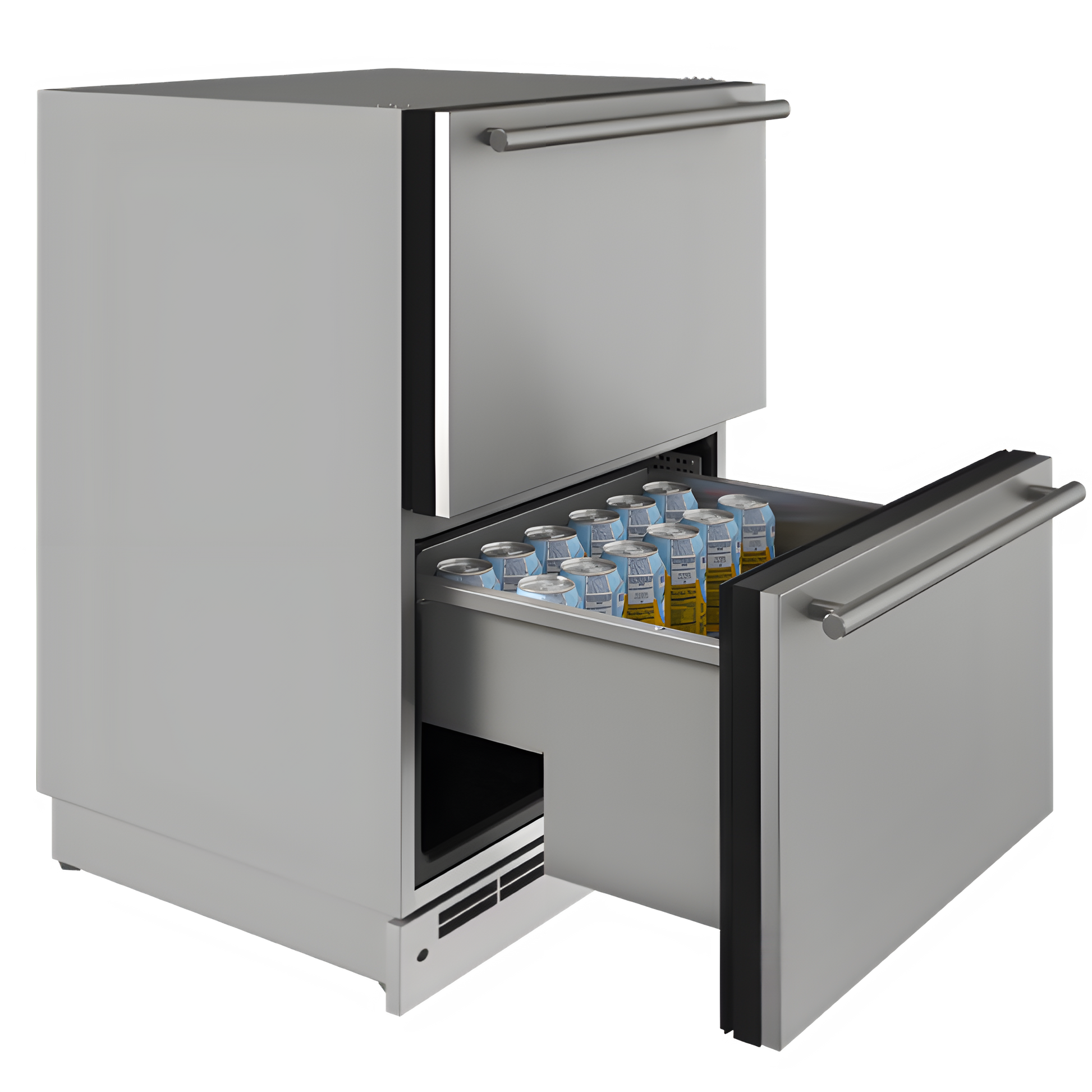 Store fresh produce, deli foods, pantry items, beverages, and more in our 24" Outdoor Refrigerator Drawers. The cabinet, toe-kick, and full-wrap drawers are finished in stainless steel. Designed to preserve your favorite ingredients, snacks, and beverages, this outdoor refrigerator makes the perfect outdoor kitchen or bar companion.