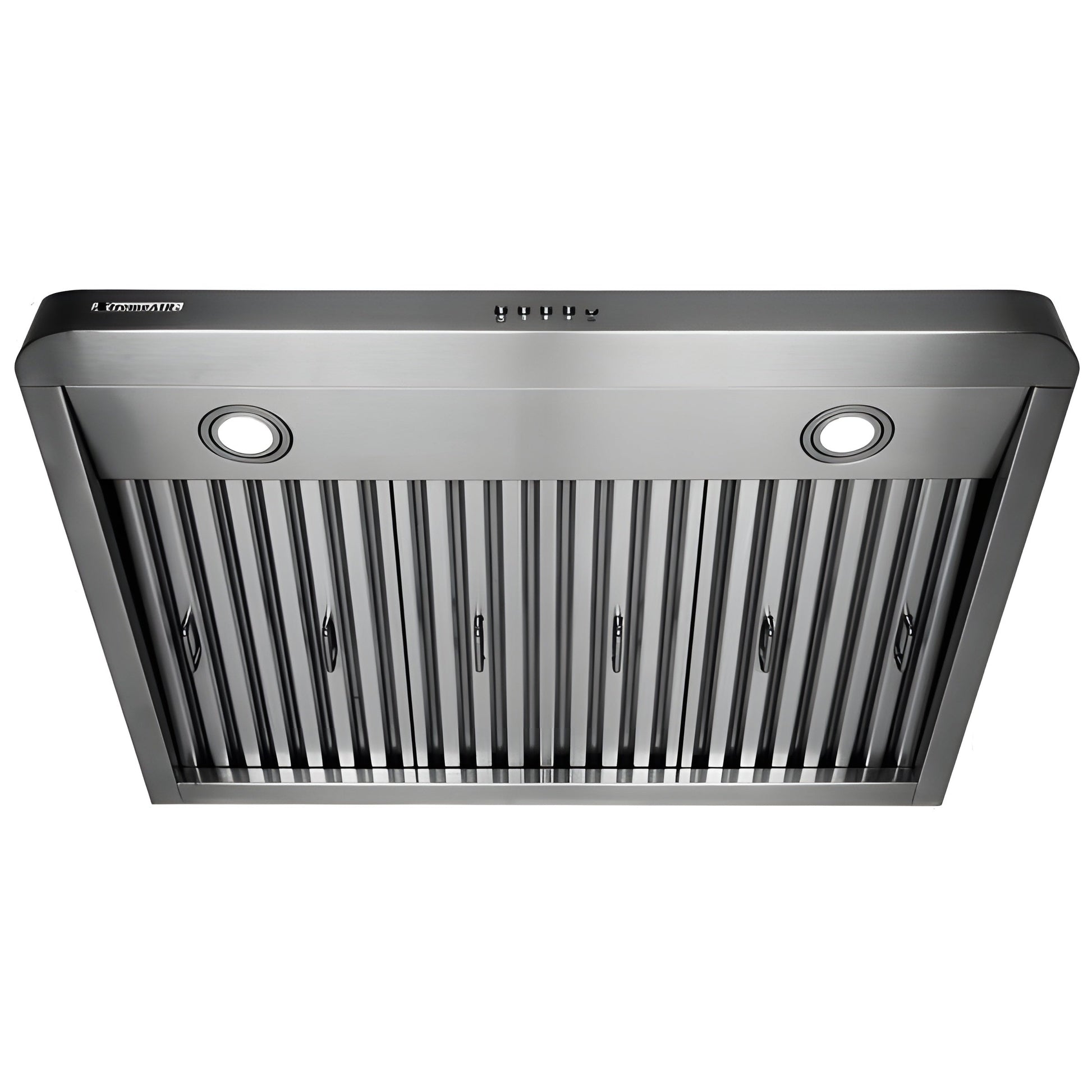 Ultra Series, 30" width, 900 CFM, Baffle filters, 3-Speed EZ Push Buttons, Full Seamless, 1.0 mm Non-magnetic S.S, Under cabinet hood